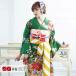 定価65600円振袖 レンタル 成人式 結婚式 緑 牡丹と雪輪に鳳凰と花 きもの道楽 12月〜1月利用 対応身長154〜165cm RS440