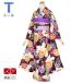 当店オリジナルのお着物です。基本コンセプトは、かわいさいっぱいのレトロモダン。鮮やかな紫地に大ぶりな立涌を配し、愛らしい梅・菊文や蝶のシルエットをちりばめました。アンティークな雰囲気とともに、どこかポップなテイストを感じさせるデザインです。
