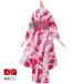 清楚な白地にピンクのぼかしを入れ、真っ赤なバラや可憐な洋花を流れるように配しました。すっきりとした小紋柄がモダンな印象のお着物です。