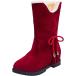 【並行輸入品】FAMOORE Fit Boots Suede Coth Splicing Ribbon Back Strap Thick High H