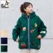 身頃、袖などに盛り沢山のワッペンや刺繍を配したインパクト大のボアジャケット。
