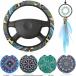 商品名: 6 Piece Mandala Car Accessories Set Include Boho Steering Wheel Cover Absorbent Mandala Ceramic Car Coasters Handmade Crystal Window Car Hanging Ornaments for Women Car Decor (Charming Style,Tassels)