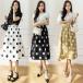 ウエストゴム レディース ロング丈フレアスカート 春夏 体型カバー ドット柄 フェミニン デイリー 通勤通学 カジュアル お出かけ 着回し 着痩せ