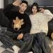 ペアパジャマペアルームウェア冬モコモコ男女2着セット長袖可愛い猫ファッションカップルレディースパジャマ