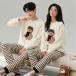 ペアパジャマペアルームウェア冬モコモコ男女2着セット長袖クマ可愛いボーダーカップルペアパジャマ