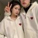 ペアルックペアルックカップルパーカー春裏起毛ハートアウターパーカー綿薄手ブランドお揃い服