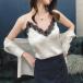 レディース キャミソール タンクトップ トップス ノースリーブ インナー 滑らか 2点セット ゆったり レースタンク シルク風 シンプル Vネック