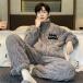 モコモコメンズ長袖パジャマメンズ冬用ルームウェア前開きスタンド襟カジュアルシンプルもこもこ着る毛布冬