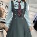 セーラー服コスプレ大きいサイズセットアップワンピース夏ウエスト着痩せサスペンダーシャツ長袖トップスblack長袖セット