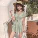 レディース 水着 ワンピース タンキニ レースアップ 体型カバー 温泉 海 プール スイミング ビーチ リゾート マリン 海水浴 夏休み 旅行 可愛い キュート セクシー 女性 グリーン イエロー ブラック M L XL サイズ 送料無料