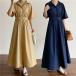 ワンピースおしゃれワンピ春きれいめロングカーキネイビー紺半袖ドレス結婚式Aラインレディース