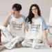 ペアセットアップ綿パジャマ半袖夏綿100%男女2着セット犬カジュアルuネック快適高級