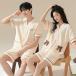 ペア高級カップルパジャマ半袖夏綿100%男女2着セットかわいいセットアップショートパンツペアルームウェア