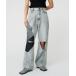 ジーンズ デニム デニムパンツ AICON × KNEE CUTTING DENIM PANTS / アイコンニーカッティングデニムパンツ レディース