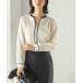 商品名:〈手洗い可能〉配色 パイピング キーネック 長袖ブラウス