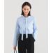キーワード:ブラウス シャツ レディース コットン ショート丈 スタンドカラー フリル 長袖 無地