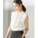 キーワード:ブラウス シャツ レディース ノーカラー ノースリーブ フリル 無地