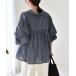 商品名:quaranciel:〈洗濯機可能〉シアー デニム ギャザー レギュラー シャツ