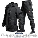 メンズ 作業服 裏起毛 防寒着 上下セット 厚手 裏ボア ジャケット ミリタリー マウンテンパーカー ジョガーパンツ セットアップ 防寒 軽量 撥水