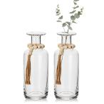 商品名: クリアガラス花瓶セット ホームデコレーション用 - 2個 ファームハウス花瓶 木製ビーズ付き 花瓶 パンパスグラス リビングルーム テーブルセンターピース 秋の装飾 8.5インチ Clear Glass Vase Set for Home Decor - 2PCS Farmhouse Vases with W・・・