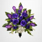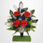 商品名: Realistic Artificial Cemetery Flowers - Silk Faux Floral Red White & Blue Rose and Calla Lily Bouquet for Grave - Patriotic Headstone Decoration - Mem・・・