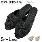 ヒールスリッパ モアレ リボン フォーマル ブラック 黒 アイボリー ピンク レディース S〜L 高級木ヒール使用 日本製