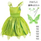 ハロウィン 衣装 プリンセス ティンカーベル ドレス 子供 ワンピース 女の子 妖精 コスプレ 衣装 お姫様 ピアノ 発表会 七五三 豪華4点セット ドレス お花の妖精