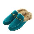 グッチ GUCCI プリンスタウン ベロア バックレスローファー サンダル 36 23.0cm ターコイズブルー 448657 /MI ■OS ■SH レディース