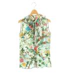 グッチ GUCCI 425021 フローラルフリルノースリーブブラウス 前開き シルク ライトブルー マルチカラー /NR ■OS レディース