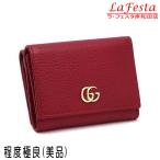 グッチ コンパクト財布 3つ折りウォレット プチマーモント テクスチャードレザー レッド 赤系 474746 中古(程度極良【美品】)