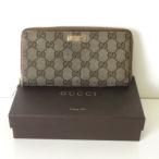 グッチ GUCCI 財布 ラウンドファスナー 長財布 GGキャンバス レザー ロゴ ベージュ 茶 ブラウン メンズ レディース