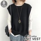 ベスト ニット レディース 女性 女子 婦人 女の子 トップス ラウンドネック プルオーバー ポップコーン生地 リブ裾セーター 体型カバー ゆったり