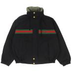 良品△GUCCI グッチ 639277 コットン インターロッキング ウェブストライプ リバーシブル ジャケット ブラック カーキ系 46 伊製 正規品